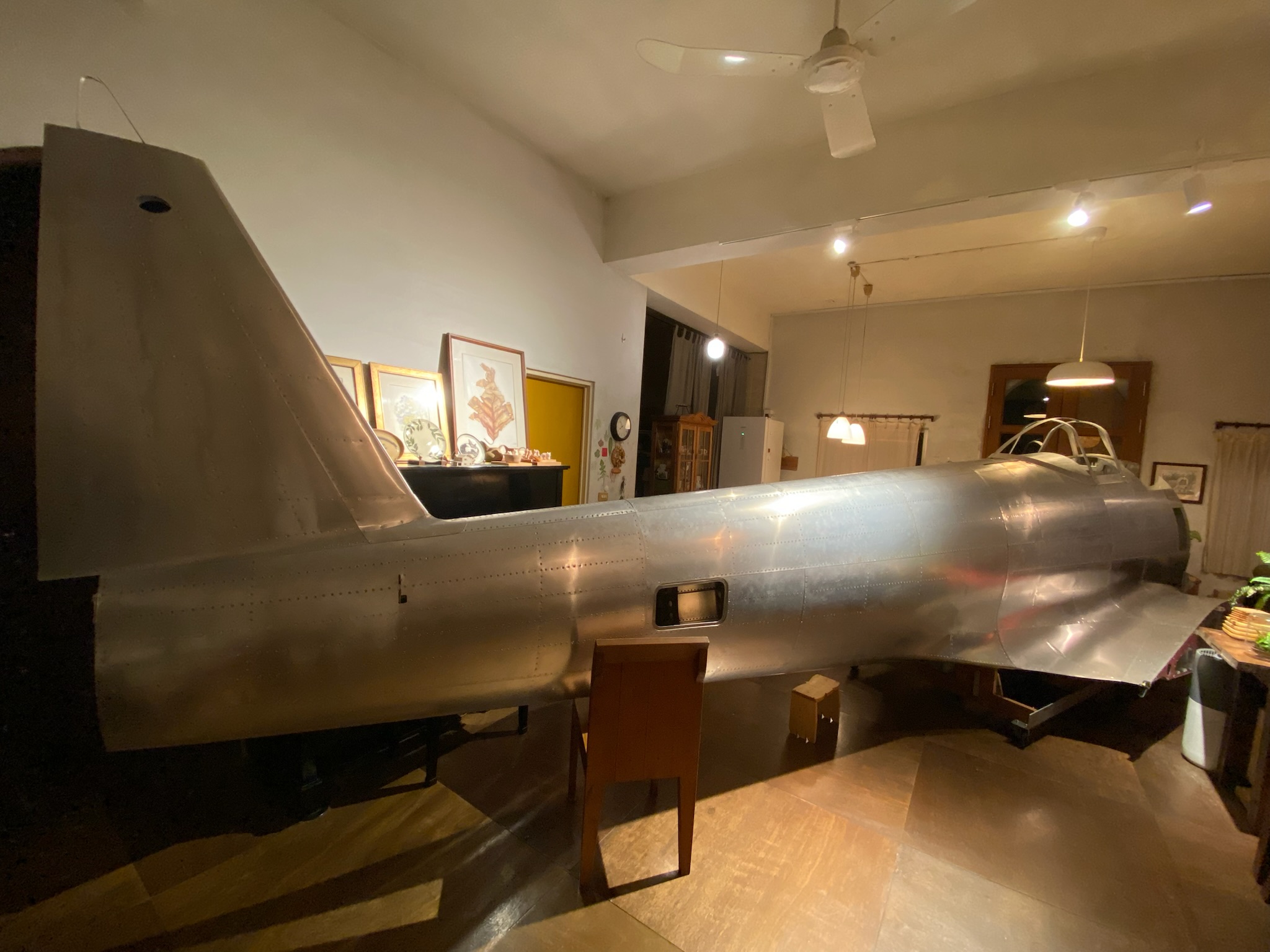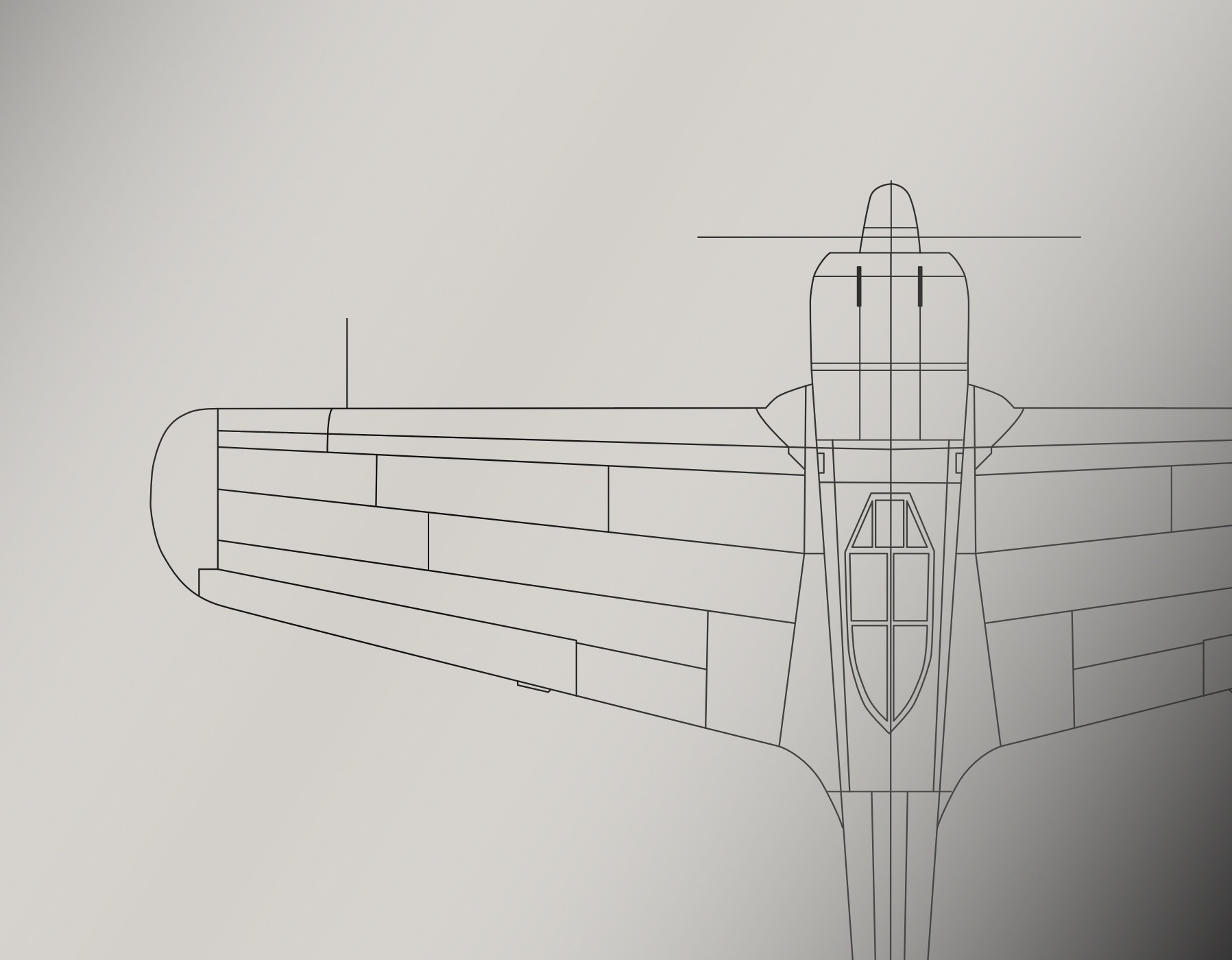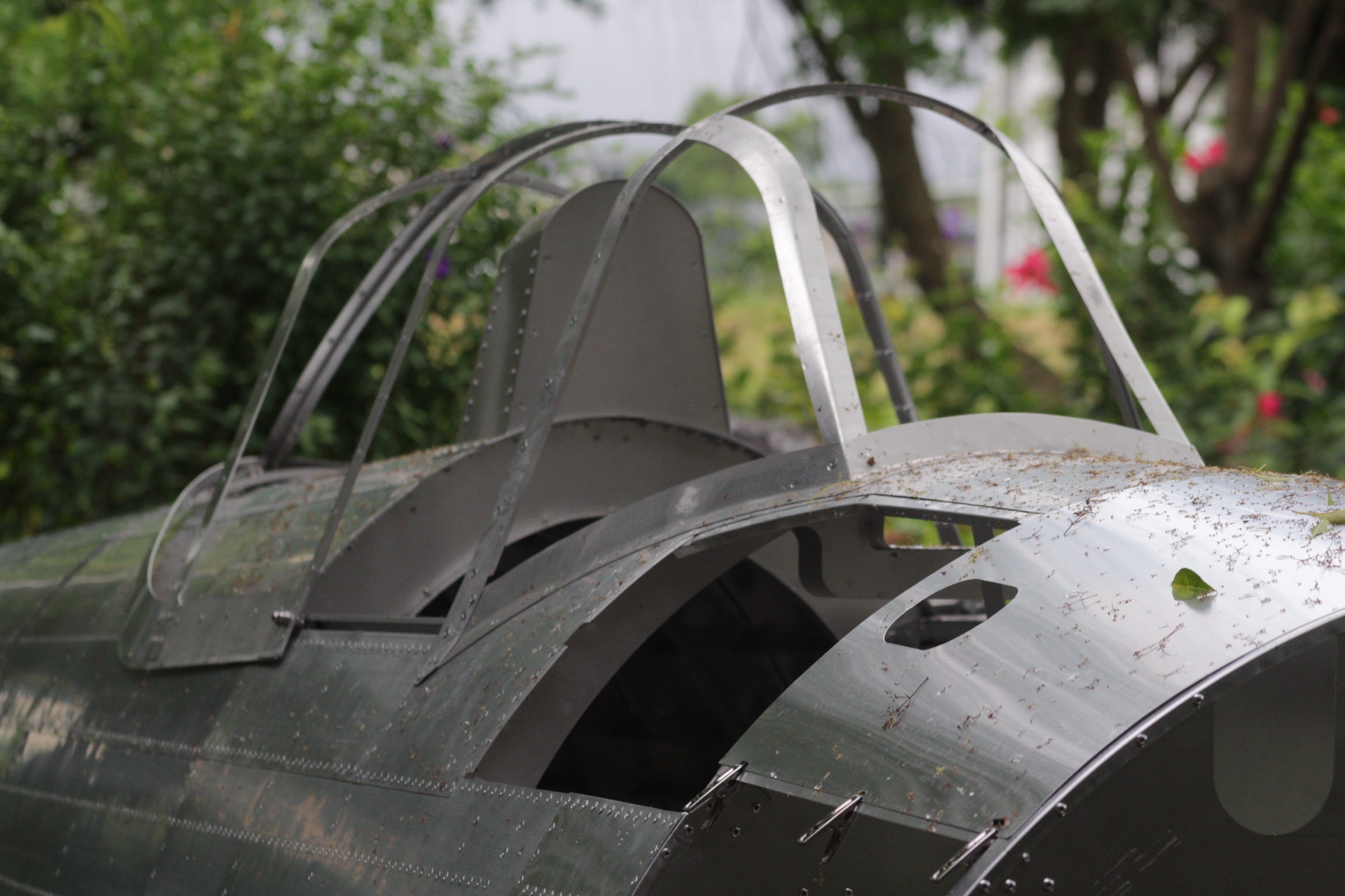 前段機身的上半部有一個淚滴型的流線座艙罩。罩子的後半部可以往後拉開,方便飛行員進出。密密麻麻的鉚釘把輕薄的機身結構和外板緊密的固定在一起,變成堅固的機體。